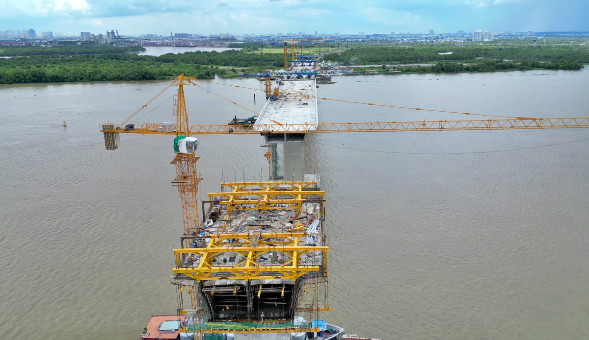 Hình ảnh những trụ cầu, đốt hầm đã vươn dài trên sông Đồng Nai để chuẩn bị được hợp long.