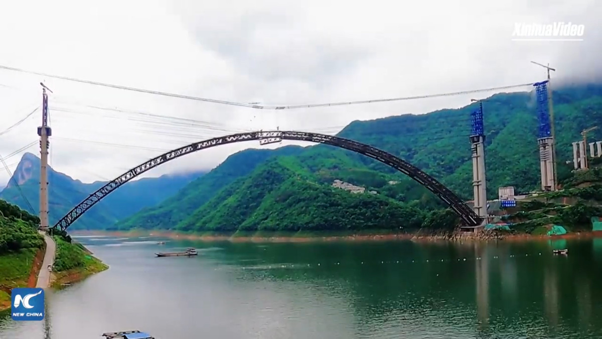 Trung Quốc đang xây dựng một cây cầu vòm bê tông khổng lồ trên sông Hồng Thủy, tỉnh Quảng Tây với nhịp chính dài 600m.