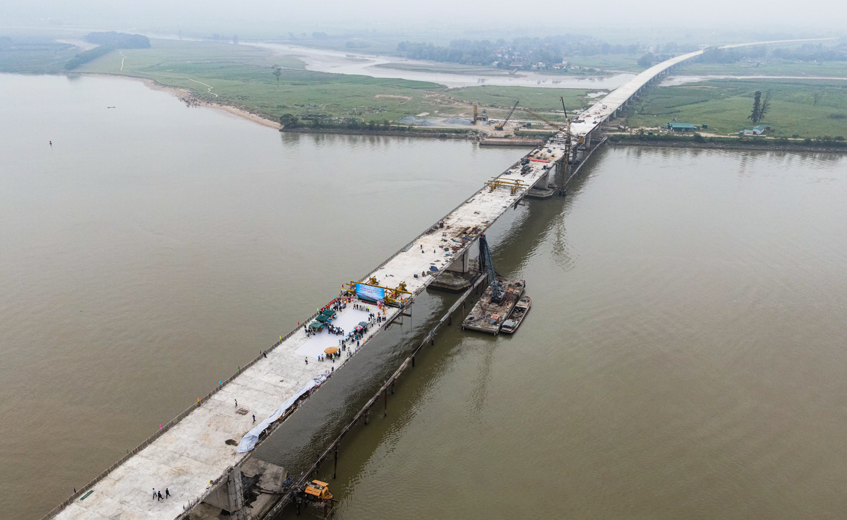 Cầu Hưng Đức vượt Sông Lam được đầu tư hơn 1.300 tỷ đồng nối 2 tỉnh Nghệ An và Hà Tĩnh, thi công theo công nghệ cầu đúc hẫng, khẩu độ đến 120m.