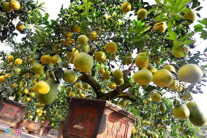 Trong ảnh là một trong những cây bưởi 200 quả, giá 40 triệu đồng/gốc. Những ngày này, khách hàng đã rục rịch đi săn đón chậu bưởi cảnh về chơi Tết.