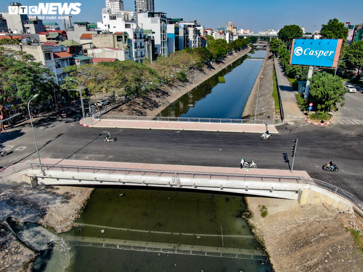Toàn cảnh cầu Yên Hoà bắc qua sông Tô Lịch, nối hai quận Cầu Giấy và Đống Đa nhìn từ trên cao.