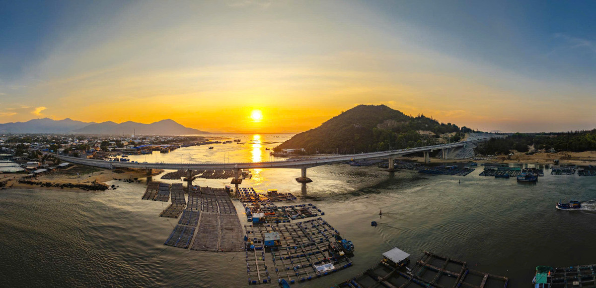 Ngay dưới chân cầu là cuộc sống bình dị của ngư dân trên những lồng bè nuôi cá biển và hàu Thái Bình Dương. Đây là nguồn sinh kế đổi mới thay cho việc nuôi tôm và đi biển quá nhiều rủi ro.