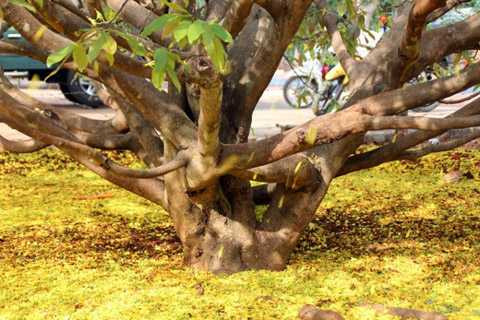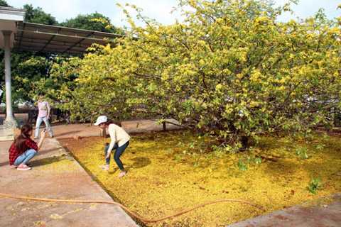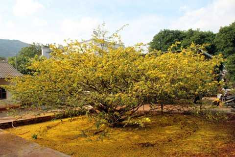 | Mỗi năm hoa nở, cánh hoa rụng xuống mặt đất trải thành từng lớp như tấm thảm màu vàng. |