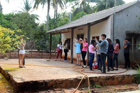 | Một số bạn trẻ thường hay thích chui xuống, núp dưới tán cây để chụp ảnh. |