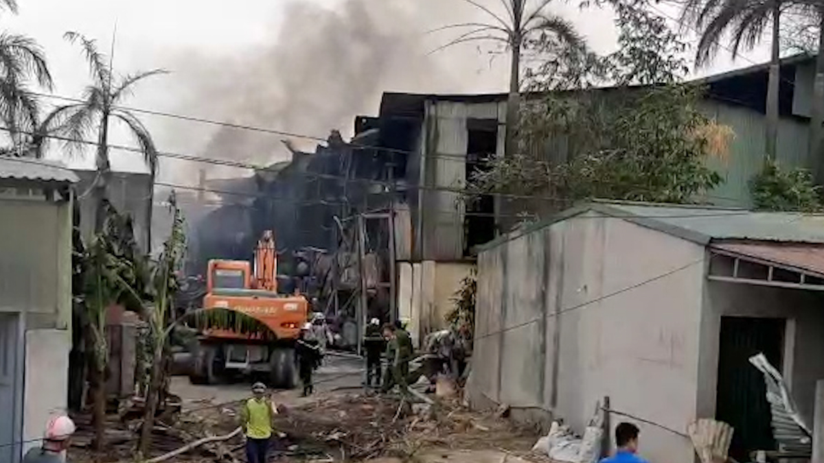 Cận cảnh cháy lớn, kèm nhiều tiếng nổ tại kho hóa chất ở Hà Nội