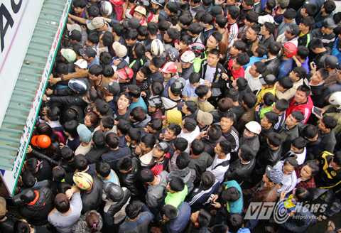 Rất đông người hâm mộ chờ đợi trong sự lo âu, sốt ruột. Cảnh tượng chen lấn xô đẩy đến nghẹ thở đã diễn ra.