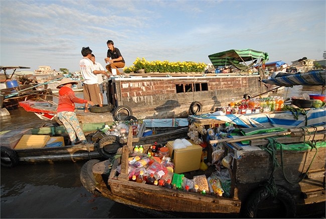 Độc đáo nhất ở vùng sông nước miền Tây có chợ nổi trôi lền bềnh trên sông để, tụ họp để buôn bán sầm quất chẳng thua gì trên bờ.(Theo Tri thức)