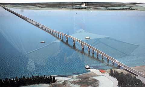 | Những trụ cầu đang sừng sững giữa biển, chờ lao lắp dầm cầu |