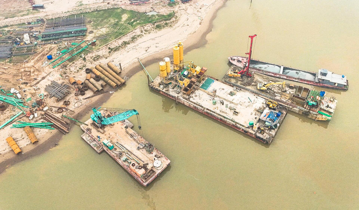 Ghi nhận của PV Báo Điện tử VTC News những ngày giữa tháng 12/2025, công trườngcầu Hồng Hà đang hoạt động sôi động. Trên mặt sông Hồng, nhiều sà lan, tàu chuyên dụng cùng các thiết bị thi công cỡ lớn được huy động để triển khai các hạng mục giữa lòng sông.