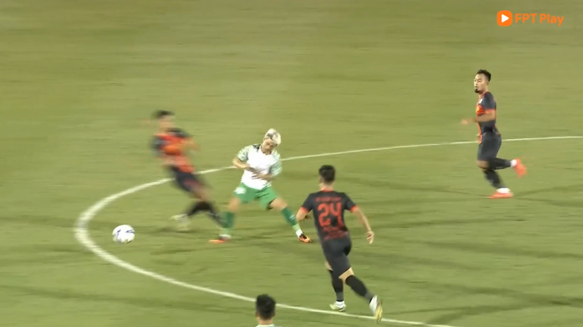 Phút thứ 3, trong một pha bóng không có gì nguy hiểm ở khu vực giữa sân, trung vệ Thành Lộc có pha vào bóng rất nguy hiểm với Bùi Ngọc Long (TP.HCM). Xem lại tình huống này, nhiều người không khỏi "rùng mình" khi Ngọc Long phải rất may mắn mới không bị chấn thương nặng. Tuyển thủ U23 Việt Nam rất bức xúc khi bị triệt hạ như vậy.