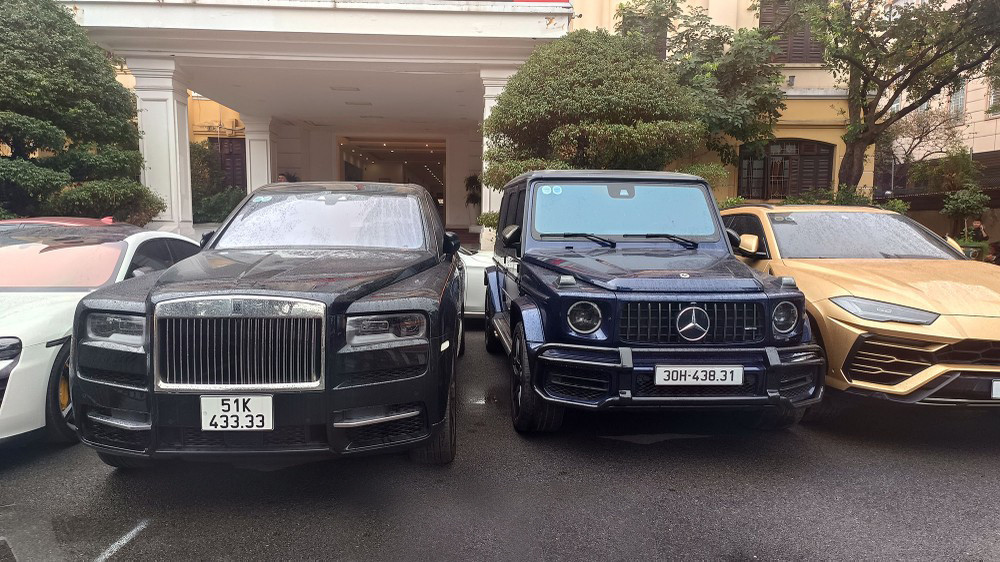 Đáng chú ý, số xe sang, siêu xe thu giữ trong đường dây này có những chiếc thuộc bản hiếm trên thị trường như: xe Rolls-Royce BKS 51K 433.33 của Phó Đức Nam; xe sang G63,Jaguar, Lamborghini, Mecerdes AMG...