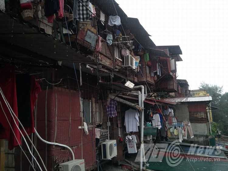 Hàng trăm ống dẫn nước thải từ các căn hộ trong khu tập thể bắc qua đầu người đi đường.