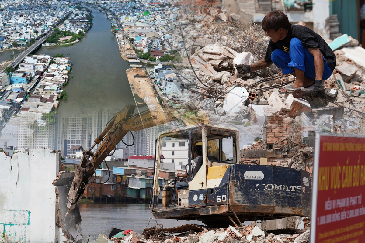 Tháo dỡ mặt bằng phục vụ dự án cải tạo bờ Bắc kênh Đôi, TP.HCM.