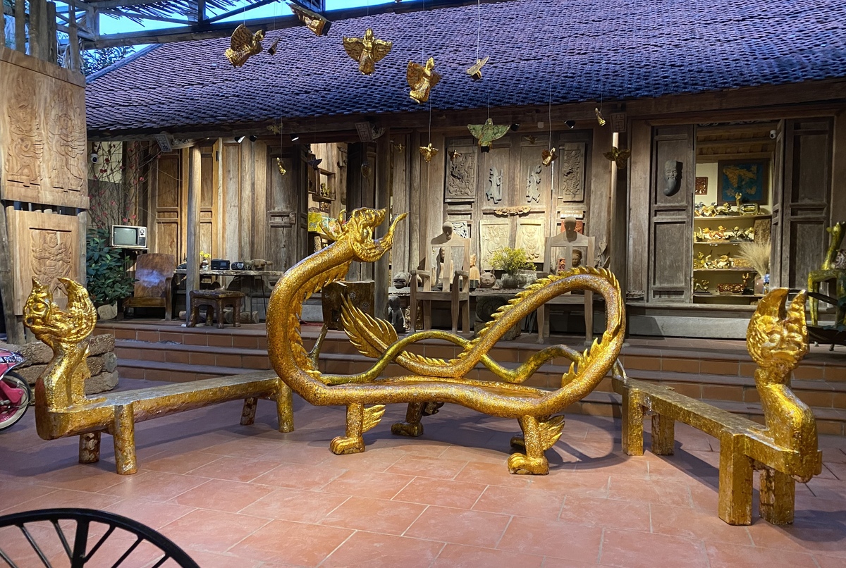 Sắp đến Tết Giáp Thìn 2024, để chào đón năm con rồng, nghệ nhân Nguyễn Tấn Phát (làng cổ Đường Lâm, Sơn Tây, Hà Nội) đã cho ra mắt bộ sưu tập 1.000 tác phẩm mang hình tượng rồng. Trong đó, thu hút sự chú ý hơn cả là chiếc ghế hình rồng được mạ vàng.