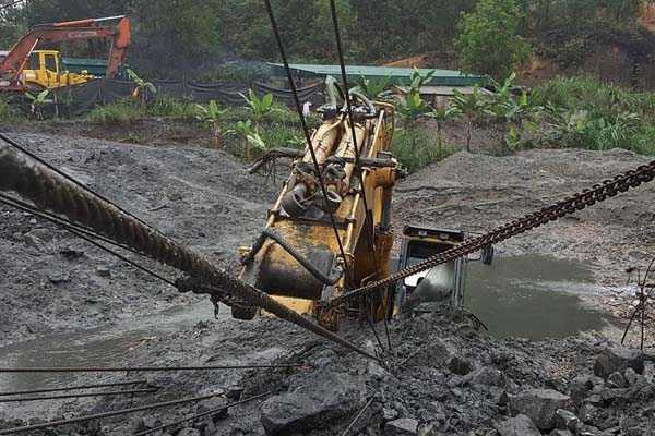 Sáng 16/3, tại khai trường Hà Ráng, Công ty than Hạ Long (phường Quang Hanh, tỉnh Quảng Ninh ), các lực lượng chức năng đang phối hợp giải cứu chiếc máy xúc Komatsu PC 850 với trọng tải 85 tấn đã bị chôn sâu dưới đống bùn lầy, đất đá nhiều ngày nay.