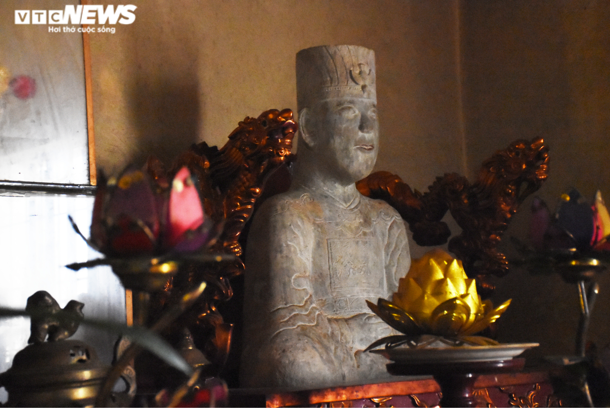Tượng Thái tổ Mạc Đăng Dung cũng được làm từ đá vôi, cao 63cm, vang ngang 37cm. Tượng mặc áo bào, cổ tròn. Trên áo chạm hình rồng trong thế cuộn tròn, mặt rồng nhìn chính diện. Hình rồng được chạm mang đặc trưng rồng thời Mạc với các dấu ấn như: mặt dạng râu, sừng đơn cong cong, mắt tròn lồi, miệng râu, tai thú...