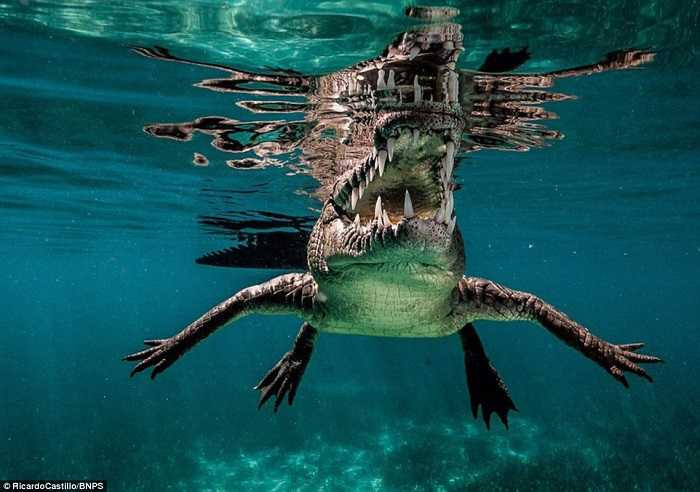 Nhiếp ảnh gia Ricardo Castillo người Mexico đã có được những bức ảnh cận cảnh hàm răng cá sấu nước mặn ở Công viên Biển Quốc gia Gardens of the Queen, Cuba.