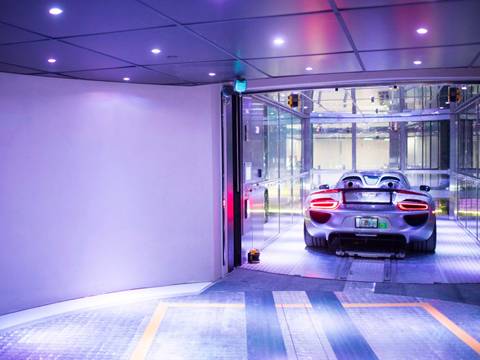 Đối với giới siêu giàu, không ít người luôn muốn ở bên cạnh những chiếc siêu xe của mình. Đánh trúng tâm lý này, tòa tháp Porsche Design Tower ở Miami (Mỹ) đã trang bị hệ thống di chuyển xe hơi lên tận căn hộ. Tòa nhà 60 tầng này nằm ở bãi biển Sunny Isles.