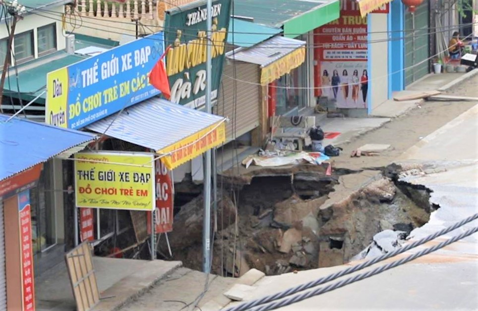 Anh Tạ Viết Chiến - chủ một căn nhà bị ảnh hưởng cho hay: “Lúc đó tôi đang ở tầng 2 thì nghe tiếng động lớn nên lập tức chạy xuống xem. Khi đến nơi tôi bàng hoàng thấy toàn bộ phần vỉa hè trước cửa bị sụt lún, một cây lộc vừng cao khoảng 6m trước cửa và một chiếc máy khoan giếng cũng bị cuốn chìm hẳn xuống dưới hố”.