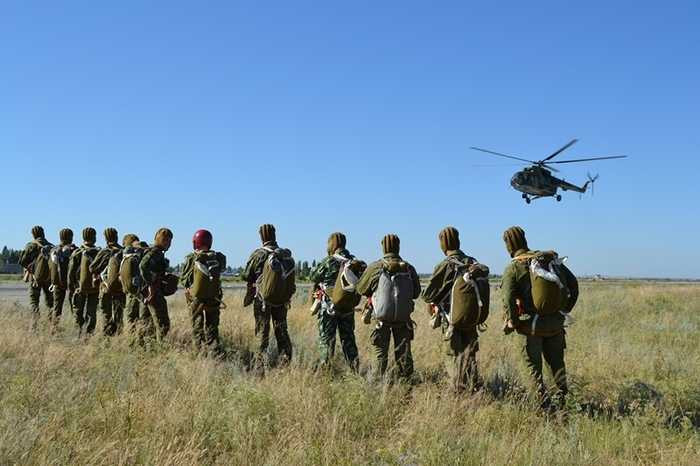 Xếp hàng để lên trực thăng Mi-8, chiếc máy bay sẽ đưa họ đến địa điểm nhảy dù.