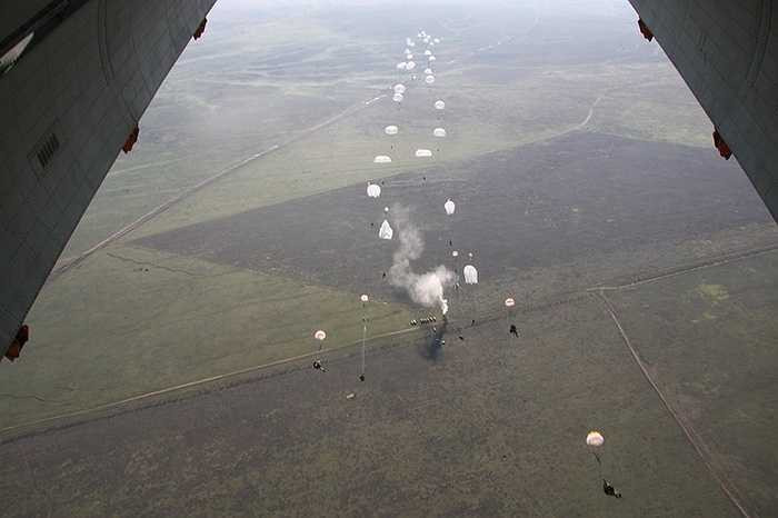Tiếp theo là bài huấn luyện đổ bộ đường không từ máy bay cánh bằng, chiếc Ilyushin IL-76.