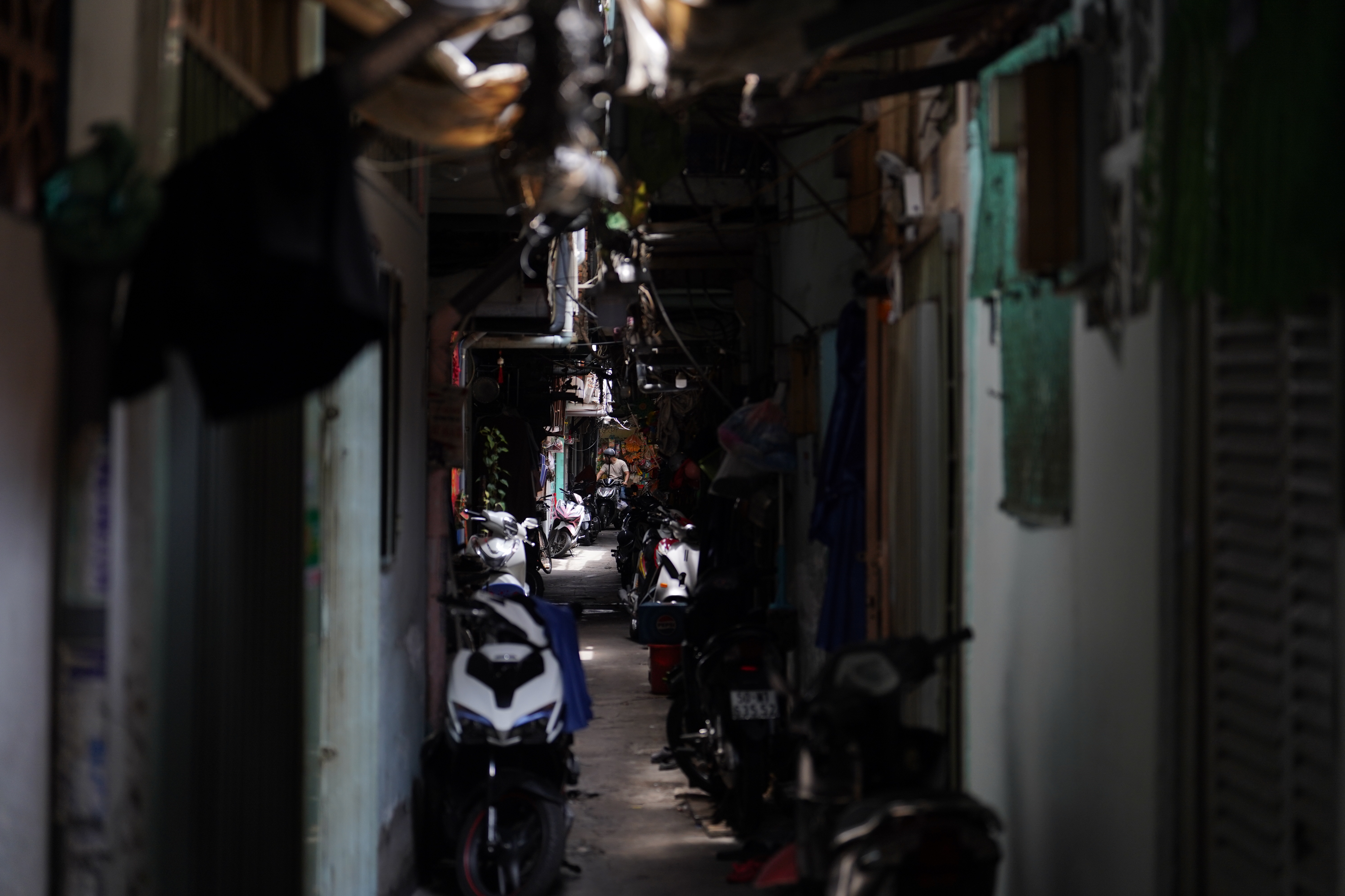 Các con hẻm ngoằn ngoèo, sâu hun hút, chỉ vừa đủ cho một xe máy di chuyển, nhiều đoạn không có ánh sáng mặt trời.