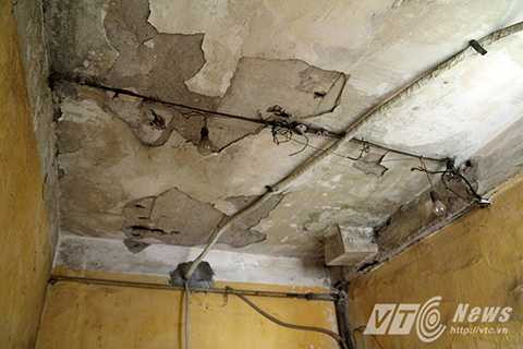 | Một mảng trần lớn của ngôi nhà đã bị đổ sập, người dân mỗi khi qua đây phải đi thật nhanh, tránh vữa rơi vào đầu. |