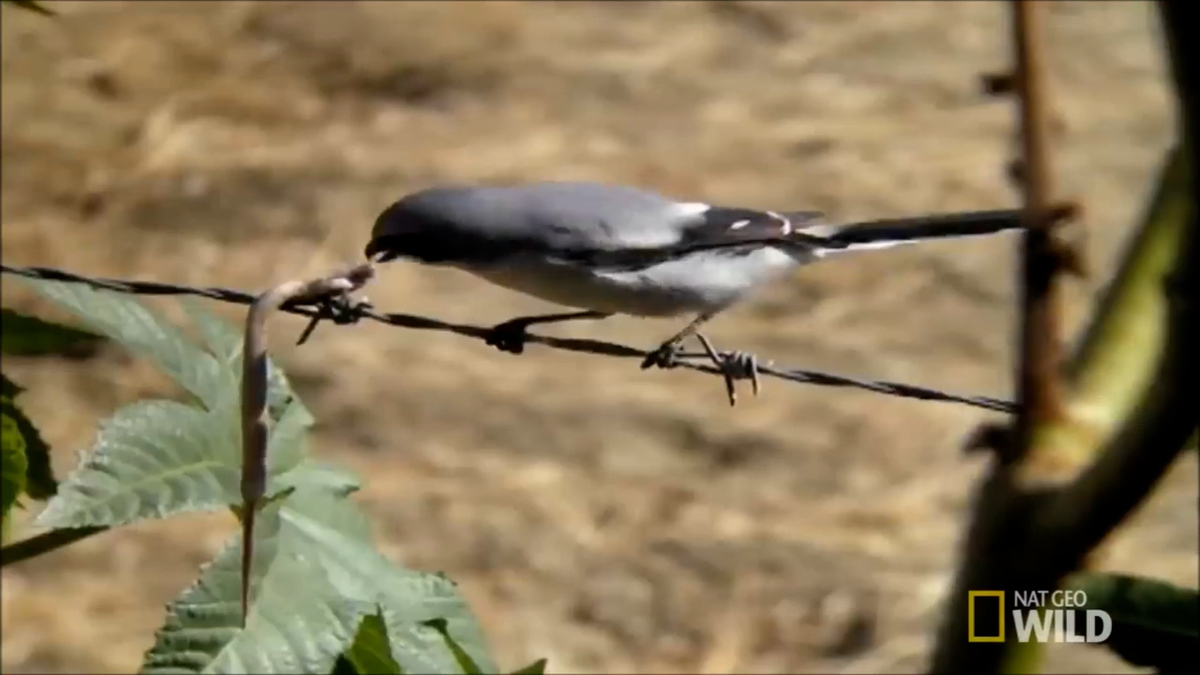 Cận cảnh loài chim 'đồ tể' xiên thịt con mồi vào vật sắc nhọn