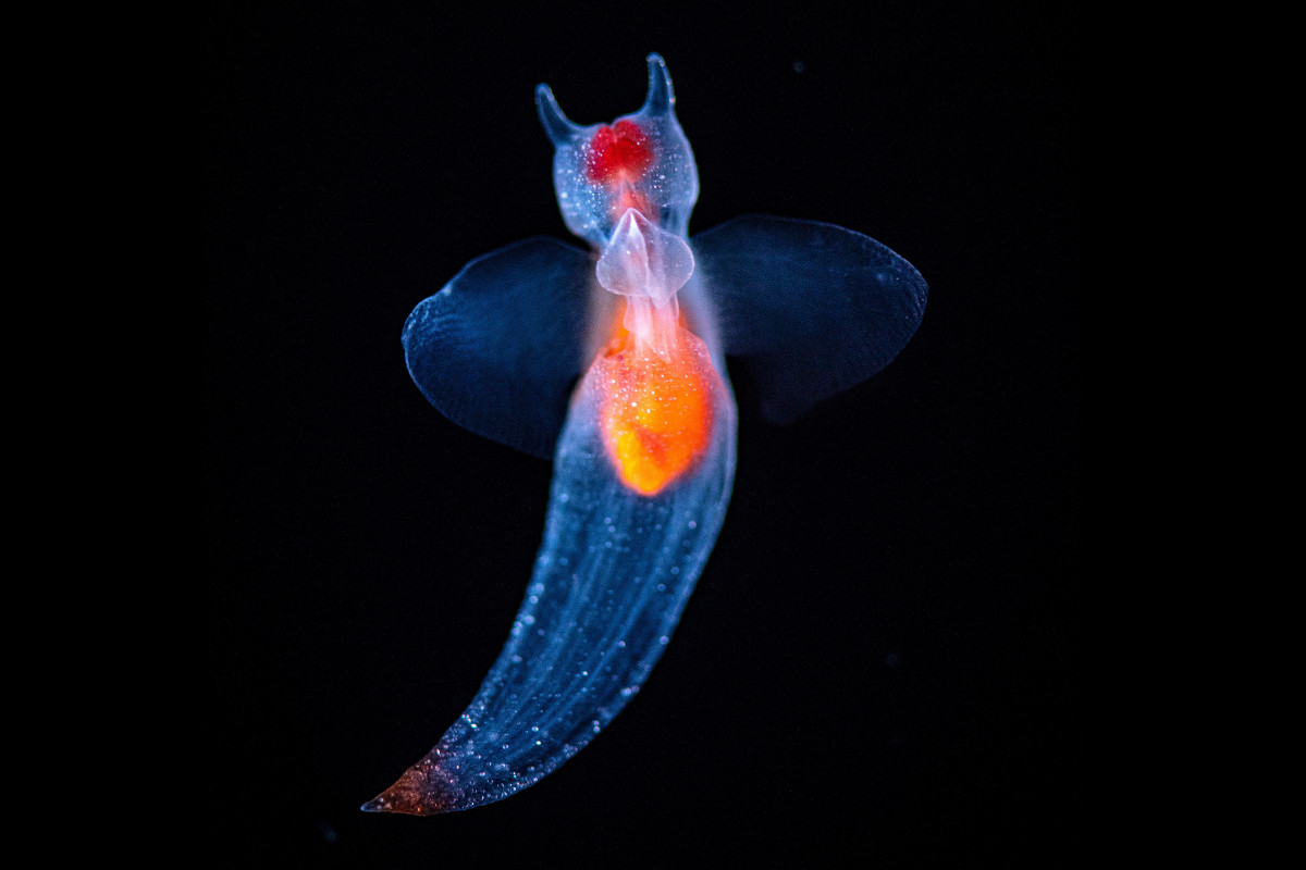 "Thiên thần biển" với hình dáng trong suốt, độc đáo thuộc nhóm sên biển, thường được tìm thấy ở vùng biển lạnh khu vực Bắc Băng Dương, Thái Bình Dương và Bắc Đại Tây Dương. Tên khoa học của sên biển là Clione limacina, hay còn được biết đến với cái tên "sea angel" (thiên thần biển).