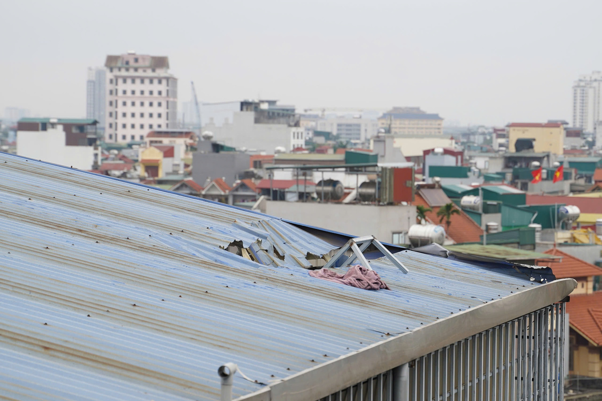 Tầng thượng lợp mái tôn, bên dưới là khung sắt kiên cố. Trong ảnh là vị trí 2 người đàn ông dùng búa, xà beng phá mái, mở đường sống cho các nạn nhân.