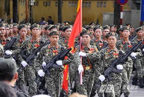 Trong đội hình diễu binh lễ kỷ niệm 70 Cách mạng tháng Tám và Quốc khánh 2/9, khối lực lượng đổ bộ đường không được giới thiệu là lực lượng đặc biệt tinh nhuệ thuộc Quân chủng Phòng không - Không quân, được trang bị vũ khí hiện đại.