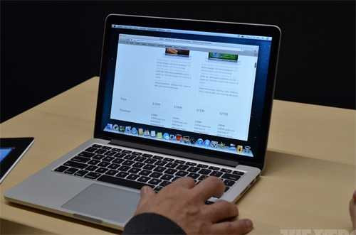 Sản phẩm mới đầu tiên bất ngờ được giới thiệu lại là chiếc MacBook Pro màn hình 13 inch và có độ phân giải Retina - theo chuẩn của Apple.