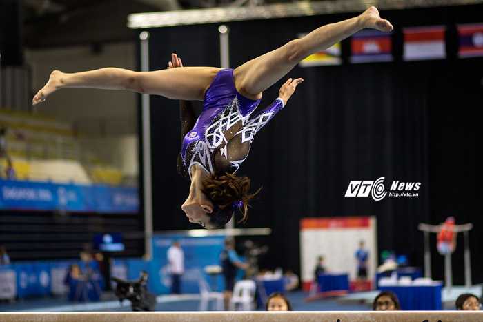 Những bức ảnh chụp nữ VĐV 21 tuổi này đang thực hiện những động tác trong phần thi của mình được cho là 'khoe cơ thể một cách quá đáng'. (Ảnh: Hải Thịnh)