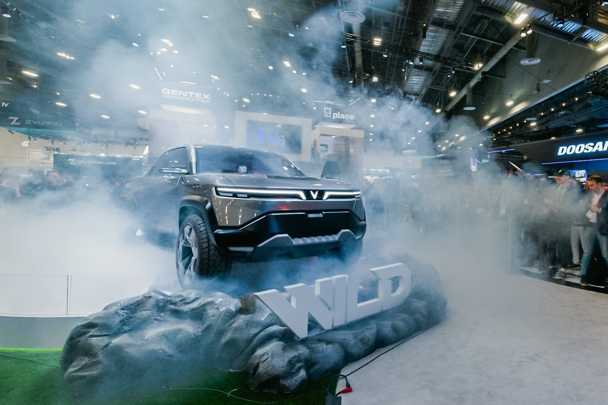 Màn ra mắt chính thức của mẫu xe bán tải điện đầu tiên của VinFast tại CES 2024.