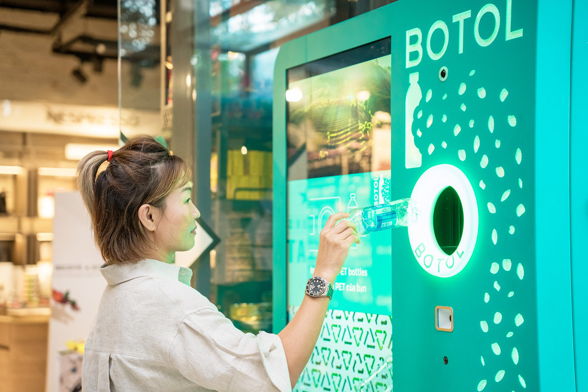 Cửa hàng Annam Gourmet (41 Thảo Điền, TP Thủ Đức, TP.HCM) vừa đưa vào sử dụng máy tái chế vỏ chai nhựa thương hiệu Botol.