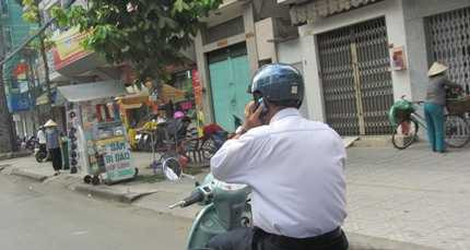 Vừa chạy xe máy, vừa nghe điện thoại dễ trở thành ‘mồi ngon’ cho kẻ cướp (Ảnh: N.D)
