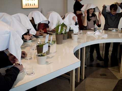| Người ta tin rằng những chiếc khăn trắng trùm kín đầu giúp họ tránh khỏi ánh mắt của Chúa khi ăn thịt chim họa mi. |