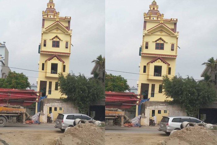 Một ngôi nhà 5 tầng ở xã Đức Lý – Lý Nhân – Hà Nam vừa xây xong đã nghiêng ngả, được so sánh nghiêng như tháp Pisa ở Ý.