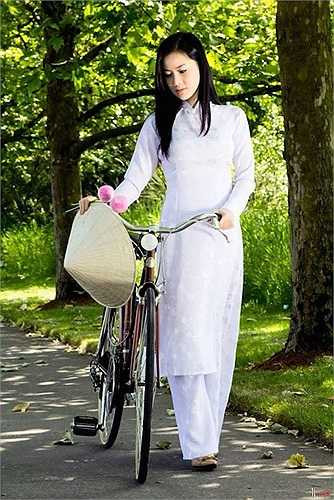 Nhờ gương mặt tròn đầy đậm chất Á đông và vẻ đẹp thanh khiết, hình ảnh cô trong tà áo dài cũng làm nhiều người xao xuyến.