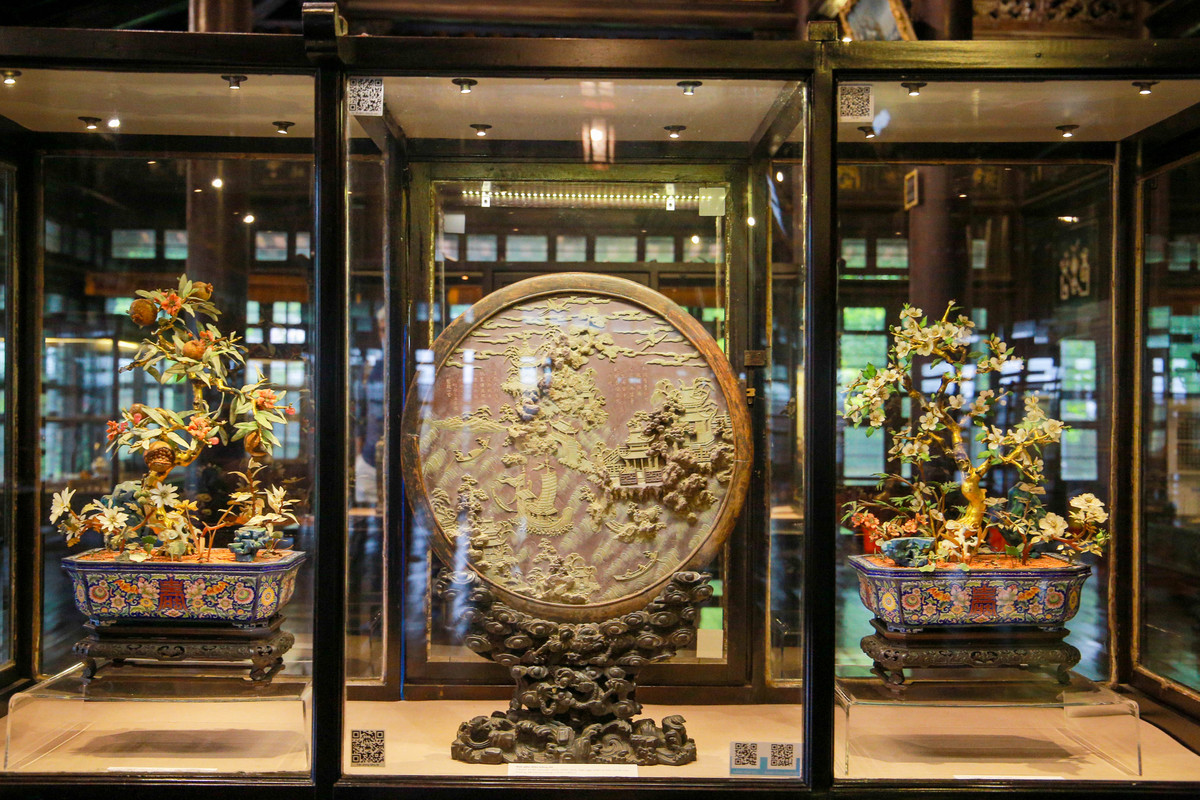 Trấn phong (phúc, lộc, thọ, toàn) bằng bạc trang trí hoa lá, “lưỡng long chầu nhật”, “hổ phù hàm thọ”, “tùng - hạc”, “chúc - tước”… cùng các cổ vật Bình hoa bằng đồng.
