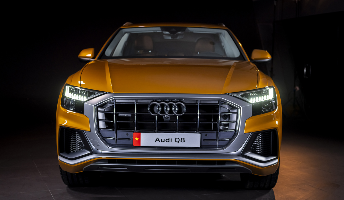 Trang bị lưới tản nhiệt khung đơn hình bát giác ấn tượng, các thanh tản nhiệt thẳng đứng rắn rỏi với lưỡi cản trước được đẩy ra phía trước và các khe gió rộng làm nổi bật vẻ ngoài tự tin của chiếc Audi Q8.
