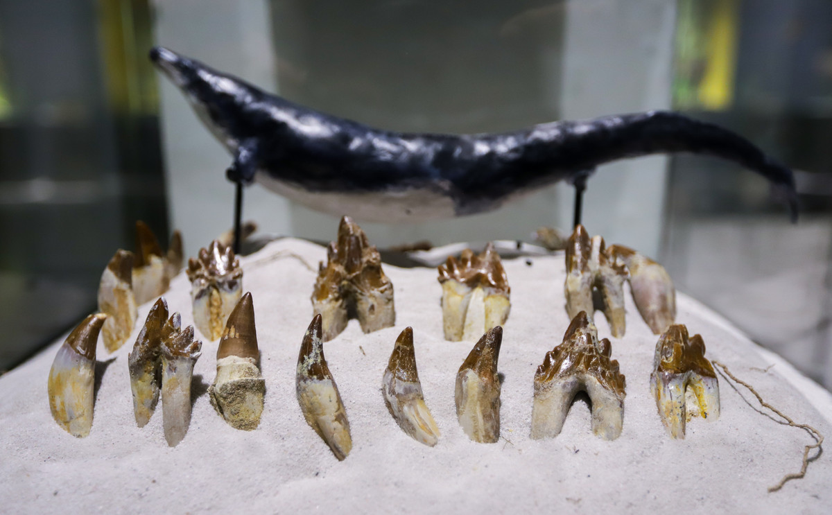 Hóa thạch răng của cá voi khổng lồ cổ đại Basilosaurus. Đây là một loài thuộc một chi cá voi sống từ 40 tới 34 triệu năm trước trong thế Eocen muộn và là tổ tiên của cá voi hiện đại ngày nay.