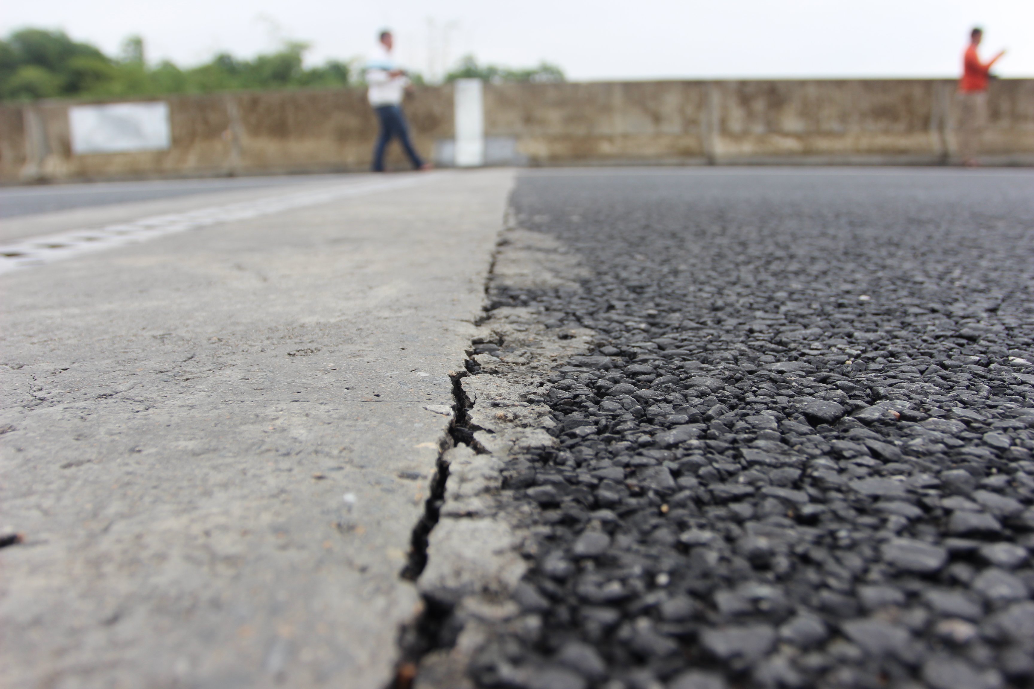Trong quá trình lún, mặt đường tiếp giáp mố cầu xuất hiện đường nứt dài khoảng 2m, rộng 1cm.