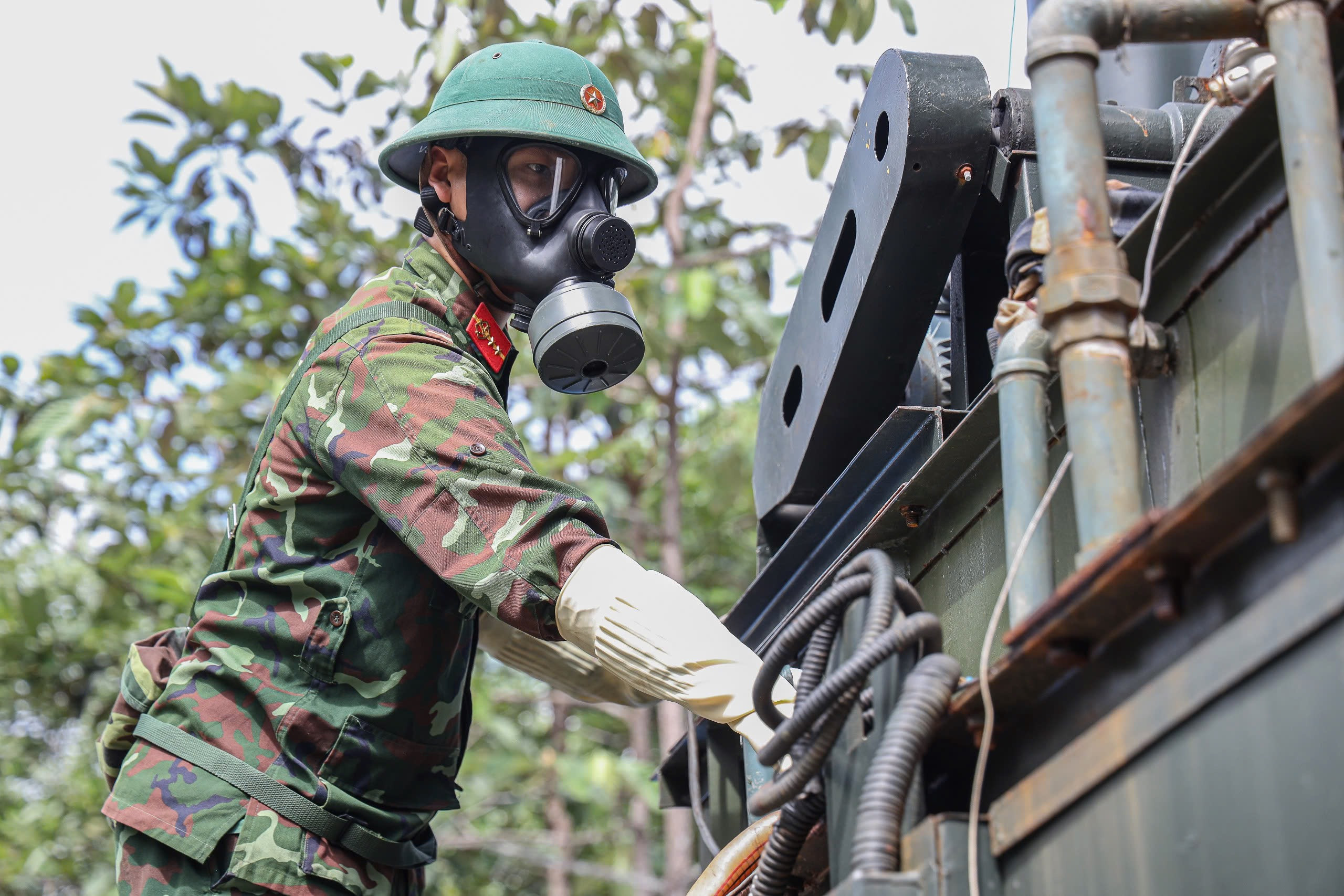 "Đây là lần đầu tiên tôi tham gia nhiệm vụ xử lý chất độc, ban đầu không tránh khỏi lo lắng nhưng nhờ được trang bị đầy đủ kiến thức, kỹ thuật và sự động viên của chỉ huy, tôi yên tâm và quyết tâm hoàn thành nhiệm vụ”, chiến sĩ Nguyễn Trần Bá Ý (Tiểu đoàn 38, Bộ Tham mưu Quân khu 7) chia sẻ.
