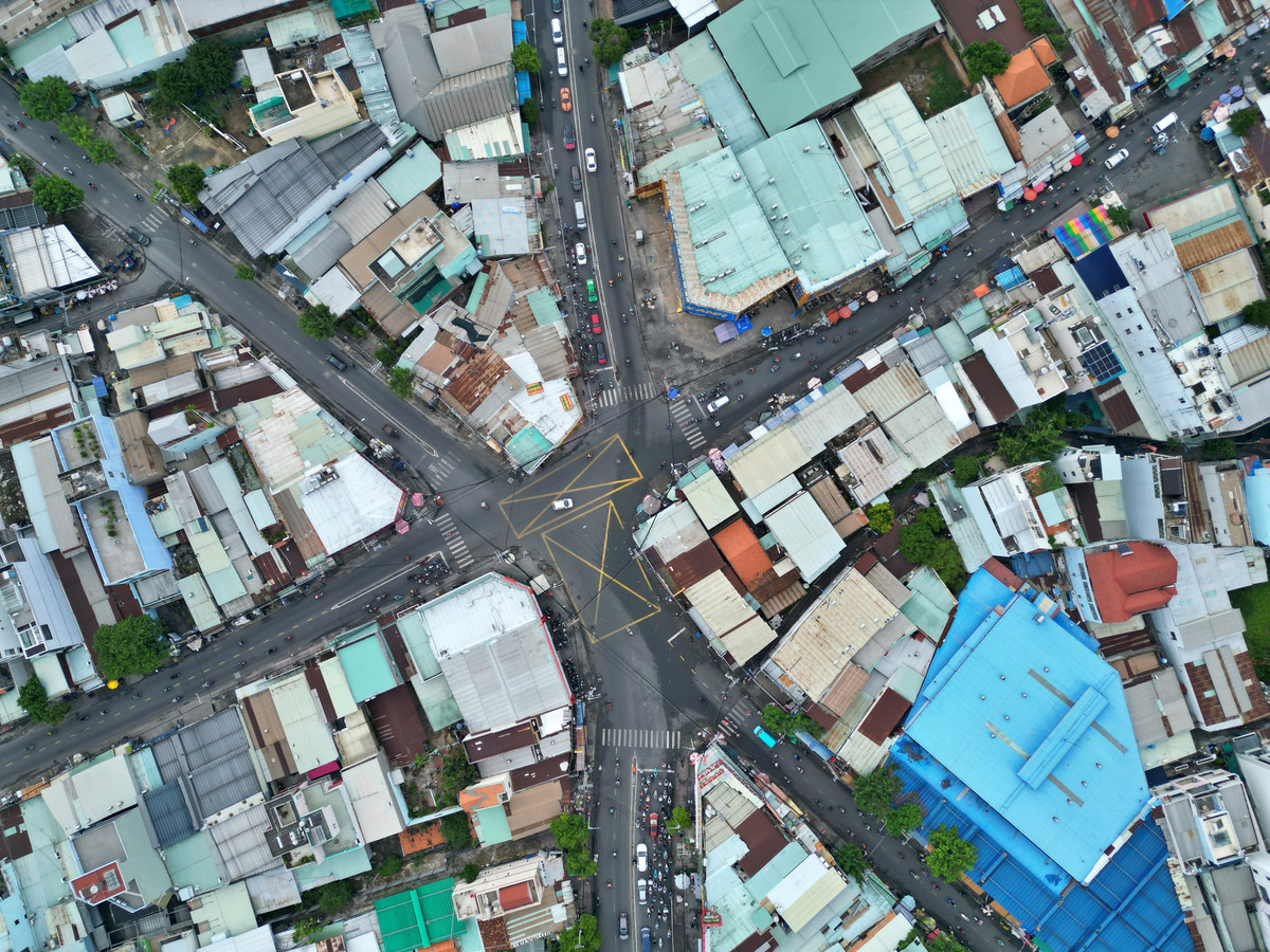 Ngã tư Bốn Xã là nơi giao nhau của 6 tuyến đường tập trung xe cộ qua lại đông đúc.