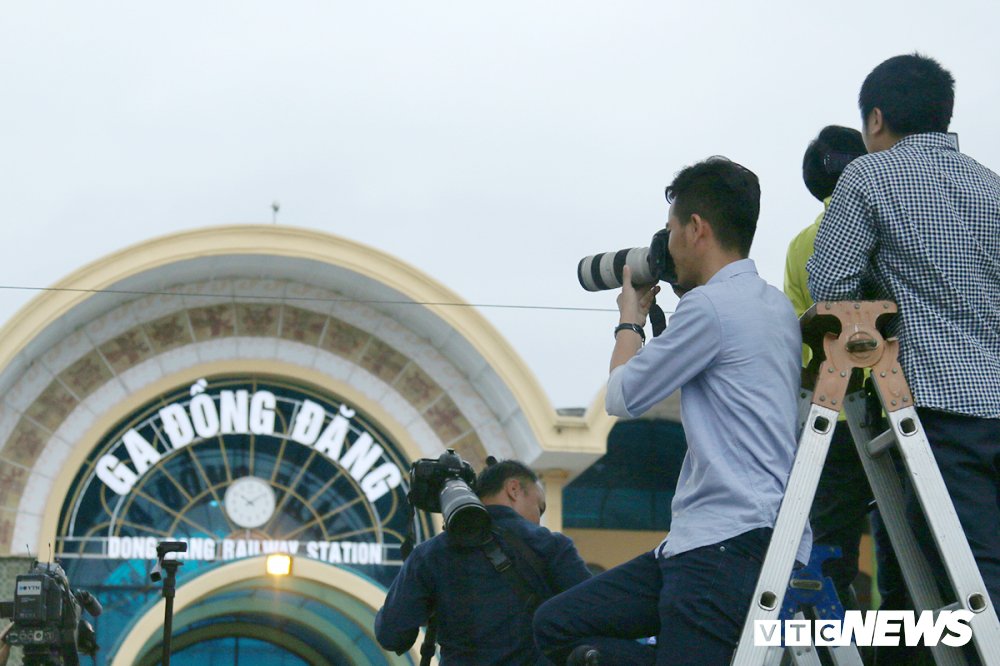 Sau khi sự kiện Thượng đỉnh Mỹ-Triều và chuyến thăm chính thức Việt Nam của ông Kim Jong-un kết thúc, "mặt trận" cuối cùng của các phóng viên là ga Đồng Đăng (Lạng Sơn). Đã có kinh nghiệm từ trước, các đơn vị truyền thông cũng cử phóng viên lên giữ chỗ từ sớm với đủ các loại thang, ghế và máy móc. (Ảnh: Ngọc Anh)
