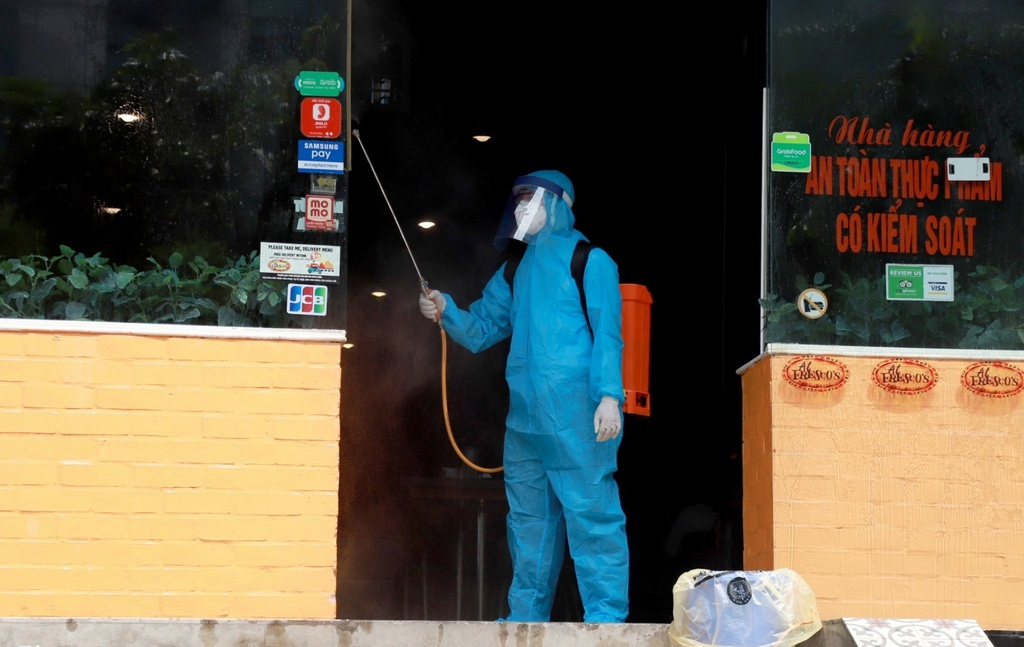 Cận cảnh phun khử trùng quán pizza ở Hà Nội nơi có ca nghi mắc COVID-19