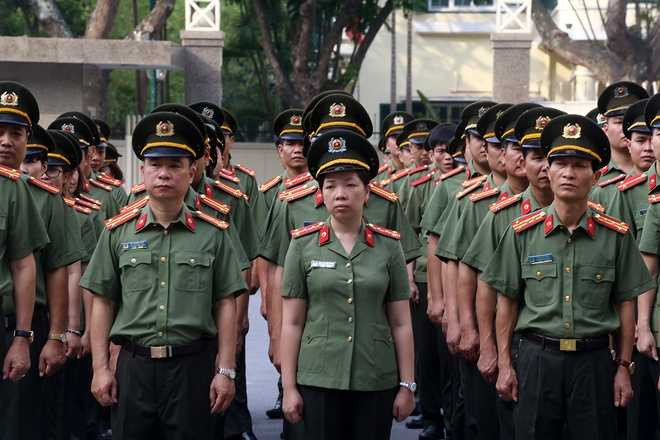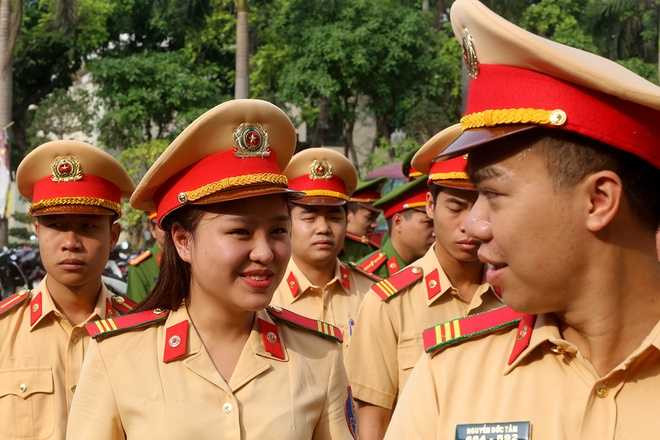 Sáng 6/6, trong lễ chào cờ đầu tuần tại trụ sở 54 Trần Hưng Đạo (Công an Hà Nội), 9 đơn vị nghiệp vụ gồm cảnh sát an ninhchính trị, an ninh kinh tế, cảnh sát cơ động, cảnh sát giao thông... đều mặc trang phục mới.