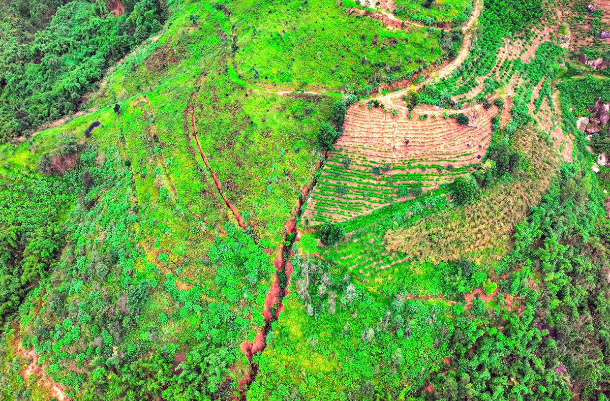 Kiểm tra hiện trường tại đồi xóm Cốc, lực lượng chức năng ghi nhận có một mương nước rộng 2,5m, sâu 2m chảy từ khu vực giữa đồi xuống con suối gần đó khoảng 100m và 2 rãnh nước nhỏ bị xói mòn thành dòng chảy từ đường nội bộ sản xuất của hộ dân nối vào mương lớn.