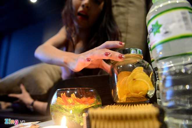 | Ngoài ra còn có nước suối, thức ăn nhẹ bày trí bên cạnh nến tạo không gian lãng mạn, ấm cúng cho các cặp đôi khi xem phim. |